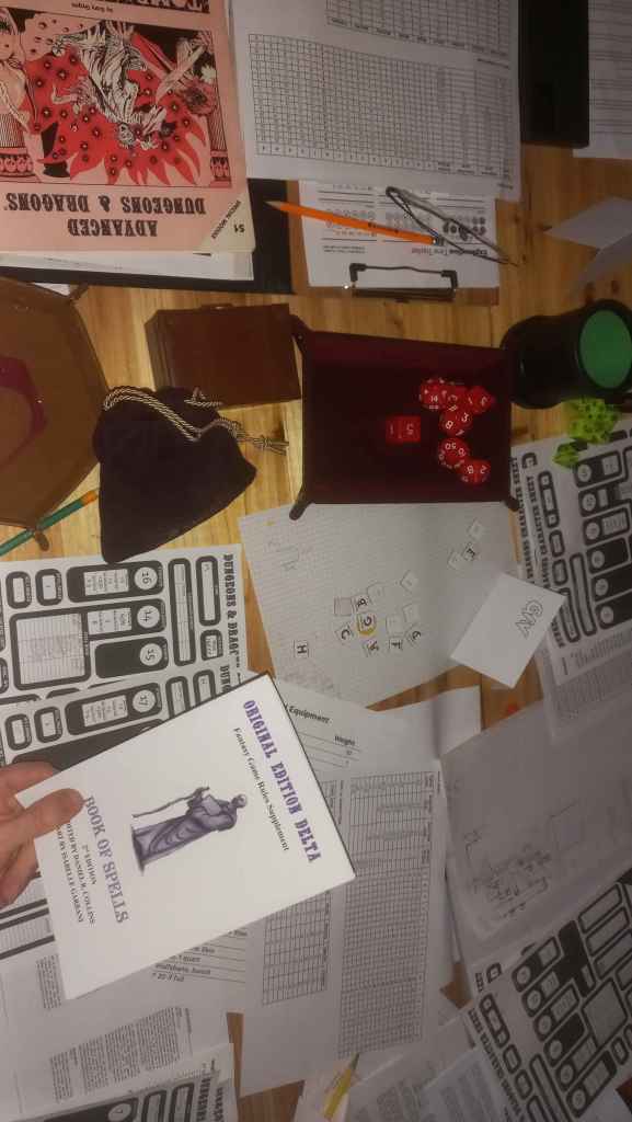 Come Saturday evening it was time for more AD&D. Six players arrived to have a crack at our DM, Andrew Walter’s, latest 1e dungeon. I had arranged before the convention to bring along my personal PC to have a crack at it. Ser Norbor once again marched out towards adventure after being one hiatus from Goldigger Bill’s Greyhawk campaign.