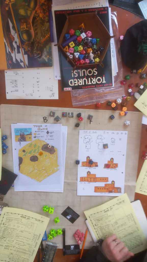The hooks I gave out were thus: a high bounty had been offered to recover a prisoner held in the lair, and a sage would pay handsomely for any artefacts or antiques from the temple’s tombs, the history of which was shrouded in mystery.