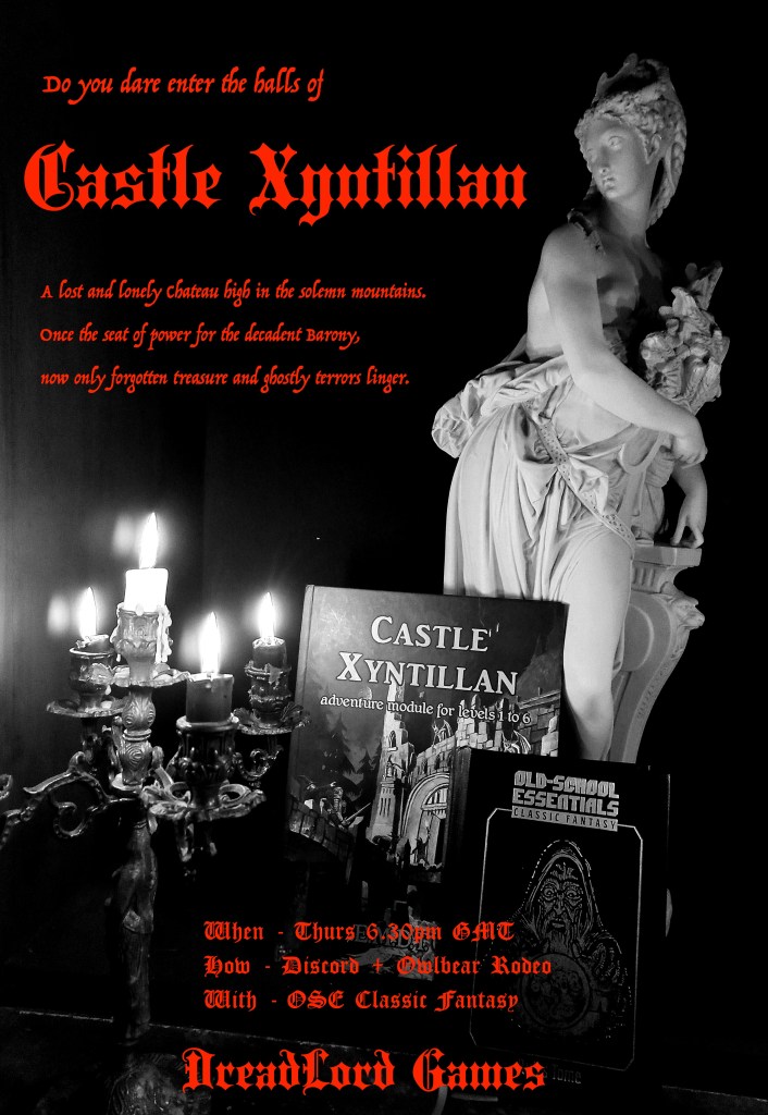 Castle Xyntillan is a sprawling mega-dungeon module created by Gabor Lux. This fine looking tome sat on my shelf for the better part of a year, something I flipped through occasionally with marvel – for it is truly marvellous – but as 2023 rolled around the gothic castle called out with its ghostly whispers, and I started a new campaign using it. My plan was to run it for six months, mastering the B/X rules as we go, which I did, and completed the Campaign in July 2023.